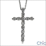 Cubic Zirconia Cz Cross .75 TCW Round Stone Share Prong Pendant