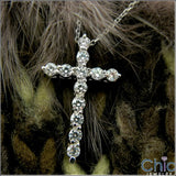 Delicate cross set with AAA high quality round stone in prong setting. 1 inch in height. Chain not included.