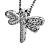 Cute dragonfly pendant set with pave set AAA high quality round stones. The sides have star, heart and moon contoured openings. Around half an inch in height. Free 16-inch chain included with purchase of a pendant