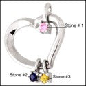 A precious heart pendant that you can personalize with the birthstone of your loved ones. Please seleCt stone number #1 (your birthstone), stone #2 (loved ones birthstone), and stone #3 (loved ones birthstone) from the pull down menus. If you have more loved ones and would like to add stones to the heart, call our customer service at (888)-884-2442