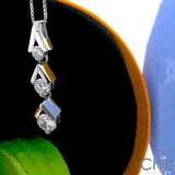 Three stone pendant, the bottom stone is 0.50 carat diamond quality cubic zirconia and gradually gets smaller .18 inch 14k white gold chain included.