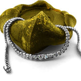 A gorgeous 17 inch in length necklace with graduate round shape high quality cubic zirconias set in half bezel setting, with double secure buckle.