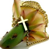 Modern chain and cross combination necklace in 14k yellow gold, 18 inches long.