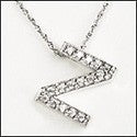 Letter Z Initial Pendant Cubic Zirconia Pave Stones 14K White Gold
