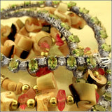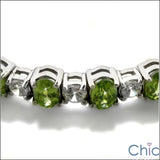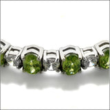 An elegant 17 inch in length necklace with high quality round cut cubic zirconias, and with high quality peridot color oval cubic zirconias, with double secure lock