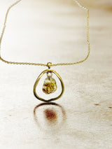 Celebrate the imperfect perfection of nature with this one-of-a-kind diamond slice necklace. A 0.59-carat natural diamond—rich with character and earthy inclusions—floats freely within a hand-shaped 14k yellow gold loop, echoing its organic silhouette. The pendant measures approximately 20mm in length, suspended from a delicate matching gold chain.