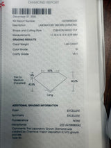 This one-of-a-kind 1.65 carat certified natural lab diamond is entirely handmade from scratch, celebrating artistry over mass production. The stone features a rare and captivating long scissor-cut cushion, Ashoka-inspired at its center, with elongated proportions and distinctive scissor faceting that creates soft, linear flashes of light rather than conventional sparkle. The result is a diamond that feels architectural, refined, and deeply modern.
