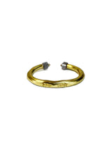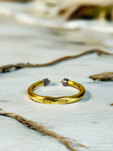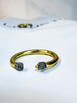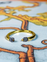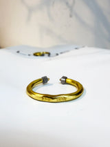 This handmade open band ring is crafted in pure 22k gold, featuring two rare salt and pepper cube diamonds (.80 total carat weight). The cube cut represents grounding and strength, while the salt and pepper inclusions reveal the raw, natural beauty within the stone.