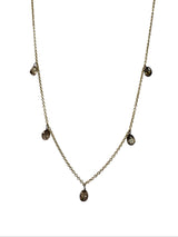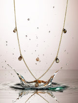 This 16-inch necklace is crafted in solid 14k yellow gold and features five natural briolette-cut diamonds with a total carat weight of 2.0ct. Each diamond is delicately suspended like droplets of rain — raw, luminous, and intentionally imperfect.