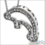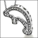 Cute dolphin like pendant set with pave set AAA high quality round stones. The sides have star, heart and moon contoured openings. Around half an inch in length.Free 16-inch chain included with purchase of a pendant.