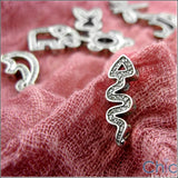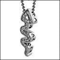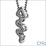 Cute snake like pendant set with pave set AAA high quality round stones. The sides have star, heart and moon contoured openings. Around half an inch in height. Free 16-inch chain included with purchase of a pendant