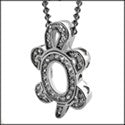 Cubic Zirconia Cz Turtle Charm in Pave Set Round Pendant