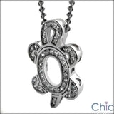 Cute turtle pendant set with pave set AAA high quality round stones. The sides have star, heart and moon contoured openings. Around half an inch in height. Free 16-inch chain included with purchase of a pendant