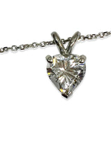 Great gift for that someone special !!1.5 carat AAA highest quality IGI certified heart shape cubic zirconia pendant.The stone measures 7.5 by 7.5 mm. The solitaire heart pendant is set in 14k white gold. The 16 inch 14k white gold chain included.