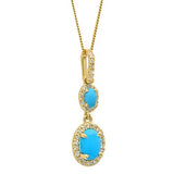Turquoise in Halo Drop Pendant in 14K Yellow Gold