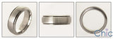 A unique titanium wedding band with a contoured edges. The width is 6mm wide. Satin finish on top and high polish inside the band.