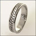 A lovely platinum band with criss-cross pattern in the center with high polished sides.