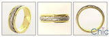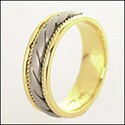 A distinCt ive high polished wedding band with engraved yellow gold on the sides and braded rope style white gold engraving on the center.