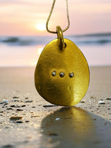 Sculptural and quietly bold, this one-of-a-kind pendant is handcrafted in rich 22k yellow gold, weighing 16.8 grams. Its softly irregular, organic form is finished with a matte brushed texture, celebrating the beauty of imperfection and the warmth of handmade artistry.