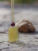 Mustard-Hued Natural Diamond & Ruby Talisman Necklace – 14k Gold
