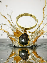 This one-of-a-kind ring features a 1.59-carat rose-cut diamond with a moody, green-gray hue, delicately hand-wrapped in 24k pure gold. The diamond's organic, faceted surface catches the light subtly, while its sculptural bezel setting adds a natural, flowing silhouette. The stone is suspended from a solid 18k yellow gold band shank, measuring 3mm wide, with a matte, hand-forged texture that highlights its artisanal character.