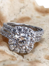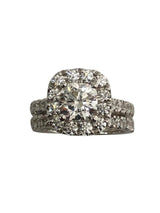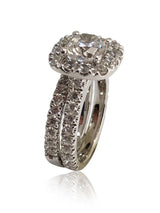 1.25 Cushion Cut Cubic Zirconia Halo Style ring with fitted wedding band