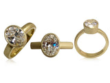 Simple and Elegant Engagement ring set with 2.5 carat AAA Highest Quality IGI certified Oval Cubic Zirconia. The center stone is set in bezel setting.  The finish on the ring is called "brushed', hence it's not shiny metal. This Item number does not include the matching band.
