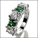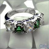 Anniversary Emerald Green Ct Diamond color 5 Stone Cubic Zirconia Cz Ring