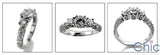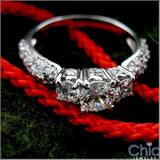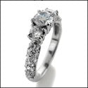 Half Carat Round Cubic Zirconia Center Pave Sides Ring 14K White Gold