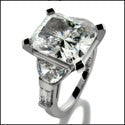 Classy & eye catching design, set with AAA high quality 4.5 carat radiant cut center stone, side's have half moon & baguettes set in channel setting.