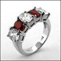 A striking anniversary ring with high polished solid shank, and high quality ruby and clear oval cubic zirconias in prong settings.