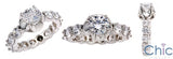 A stunning engagement ring with high polished shank and AAA high quality round cubic zirconia center in a prong setting. Round high quality cubic zirconias on the sides are set in shared prong setting.