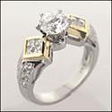A Special Occasion ColleCt ion two tone ring with a round high quality cubic zirconia in a six prong tiffany style setting and round and princess cut zirconias on the sides in pave and invisible setting.