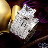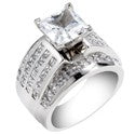 2.5 Princess Cut Cubic Zirconia Center 15mm Wide Channel Set Shank 14K White Gold CZ Engagement Ring