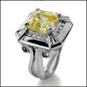 3.5 Canary Asscher Cubic Zirconia 14K White Gold Anniversary CZ Ring