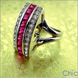 Channel Set Ruby Princess Cut Cubic Zirconia Right Hand 14k White Gold Ring