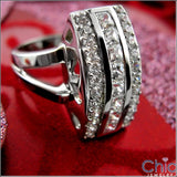 Right Hand Ring Princess Round Elongated Cubic Zirconia 14k White Gold