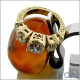 Estate Round Stone18K Gold Engraved Shank Cubic Zirconia Cz Ring