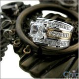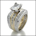 Matching Set 2 Ct Radiant Channel Princess Two tone Wedding Cubic Zirconia Cz Ring