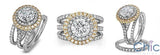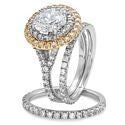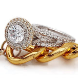 2 Carat Round CZ Double Halo Pave Engagement Ring and Bands Two Tone Gold