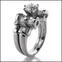 Matching Set Round 1 Ct Center Channle Baguettes Cubic Zirconia Cz Ring