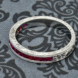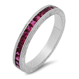 Wedding HCt Engraved Ruby in Channel Cubic Zirconia CZ Band