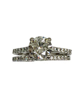 1.5 Round Cubic Zirconia Low Set Engagement ring with matching band 14k white gold