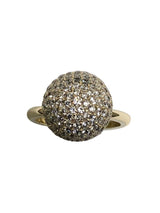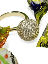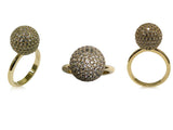 12 MM BALL RING WITH MICRO PAVE 14K YELLOW GOLD