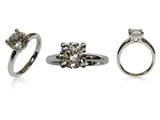 AAA High Quality IGI certified 2 carat round cubic zirconia solitaire ring. The center stone is set in 4 prong low profile setting.The dome shank makes this simple yet elegant piece even more beautiful.