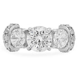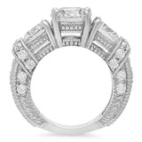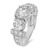 2 Carat Round Brilliant Cubic Zirconia with 0.75 on Each Side Stones Engraved Pave Set 14K White Gold Ring