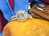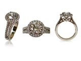 2 Carat Round Cubic Zirconia Halo style pave set engagement ring 14k white gold