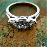 Elegant 3 stone with high quality AAA royal Asscher 0.75 center, and trillions on the sides.