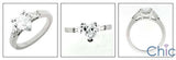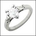 A eye-catching engagement ring with high polished solid shank and a high quality heart shaped dimaond cubic zirconia center stone in prong setting and baguette diamond cubic zirconias in prong setting on the sides.