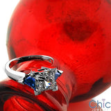3 Stone 1.25 Princess Center Sapphire Triangles on Cubic Zirconia Cz Ring